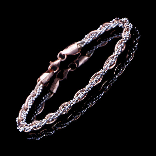 Graceful. Modern. Effortlessly striking — the D’Amour Twist Bracelet elevates everyday elegance with its sleek, intertwined design. Crafted in 92.5% sterling silver, this bracelet features a twisting band that seamlessly blends rose gold and white gold tones, creating a subtle yet captivating interplay of color and light. The polished finish...