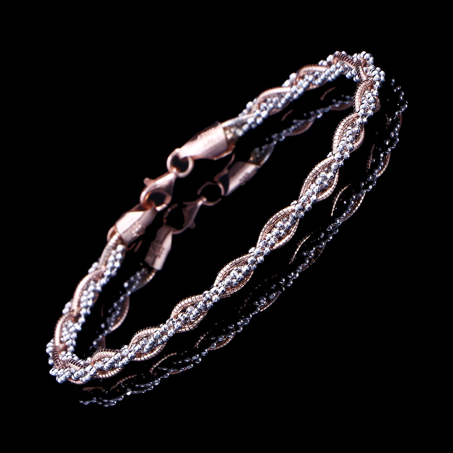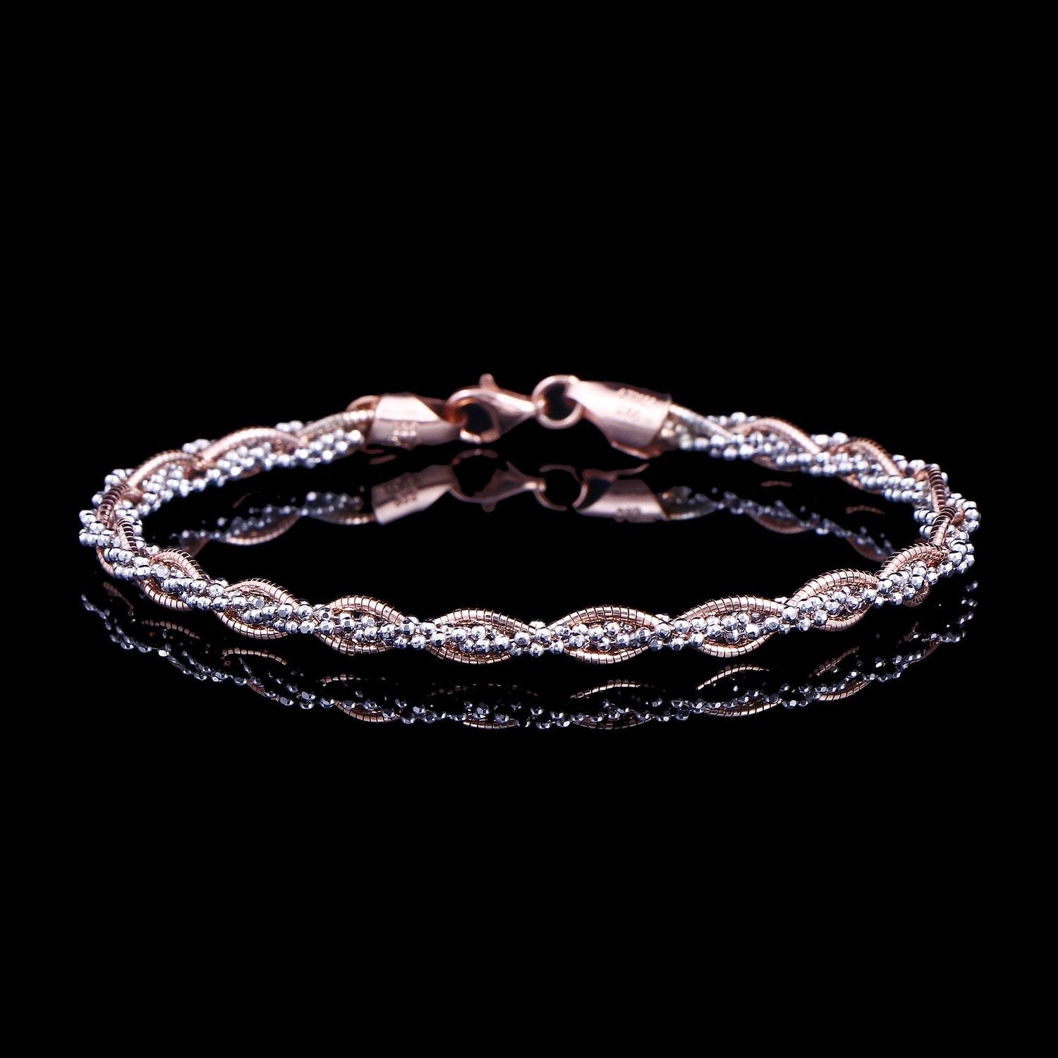 Graceful. Modern. Effortlessly striking — the D’Amour Twist Bracelet elevates everyday elegance with its sleek, intertwined design. Crafted in 92.5% sterling silver, this bracelet features a twisting band that seamlessly blends rose gold and white gold tones, creating a subtle yet captivating interplay of color and light.
